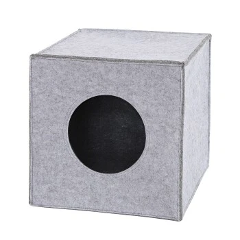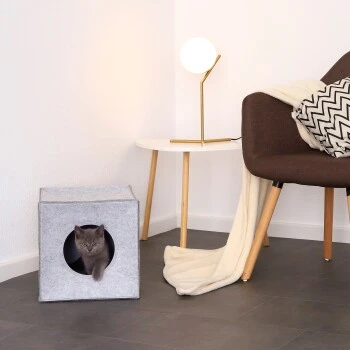 Wenn du an einer Alternative für die gängigen Katzenbetten interessiert bist, ist die lionto Katzenhöhle eine ideale Lösung. Die würfelförmige Kuschelhöhle aus warmem und stabilem Filz beinhaltet einen Eingang mit einem Durchmesser von 17 cm und einer Wanddicke von 5 mm. So kann der faltbare Katzenwürfel ohne Bedenken als Katzenbettchen und Rückzugsort genutzt werden und vermittelt deiner Katze ein sicheres Gefühl und Wohlbehagen. Die Maße betragen 33x37x33 cm und somit ist diese Filzhöhle für einige gängige Regale wie beispielsweise dem Ikea Kallax oder Ikea Expedit Regal geeignet. Wenn du die Höhle in ein passendes Regal stellst, werden besonders Katzen, die sich gerne zurückziehen, voll auf ihre Kosten kommen. Natürlich macht die Katzenhöhle auch freistehend etwas her und bietet immer einen gemütlichen Schlafplatz. Wir bieten diesen Filzwürfel in den Farben hellgrau und dunkelgrau und wahlweise mit einem weichen Liegekissen oder ohne Kissen an. Der Bezug des Liegekissens kann zur Reinigung abgenommen werden.