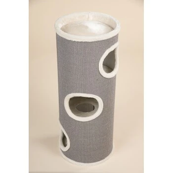 Die Kratztonne bietet sehr viel Spiel-, Ruhe- und Rückzugsmöglichkeiten für Ihre Katzen in der „Coony Lounge“.