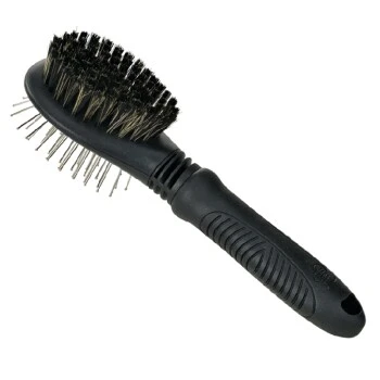 Die TAKE CARE 2in1 Pflegebürste ist mit echten Naturborsten und Edelstahl ausgestattet und vereint zwei Pflegewerkzeuge in einer Bürste: